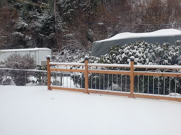 Close to 1 acre. Lots of parking and RV parking. It has 3 bay shop that is 2 vehicles deep. We have been remodeling and upgrading. Would like to find a house to trade in the Albany, Salem, silverton, Harrisburg area. We are 9 miles from the ocean.