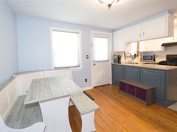 Welcome home to this 2-bedroom, 2-bath condo located in a garden courtyard setting. Features updated kitchen with granite countertop and beautiful white tile backsplash. Partially finished basement with half bath creates a perfect space for a home office or playroom. Original wood floors throughout. Small patio area in rear and detached garage. Central air. This condo has it all! Great for homeowners or investors!