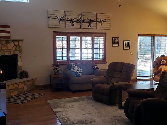 Close in location, treed lot, quiet street. Great open floor plan, covered front and back decks, 3 bedroom 1 3/4 bath, large great room with hickory hardwood floors, rock fireplace, tiled bathroom floors and laundry room, carpet in bedrooms. Knotty alder cabinets, doors and trim. Tiled shower in master, newer fridge/range. Fenced back yard. (washer and dryer not included)