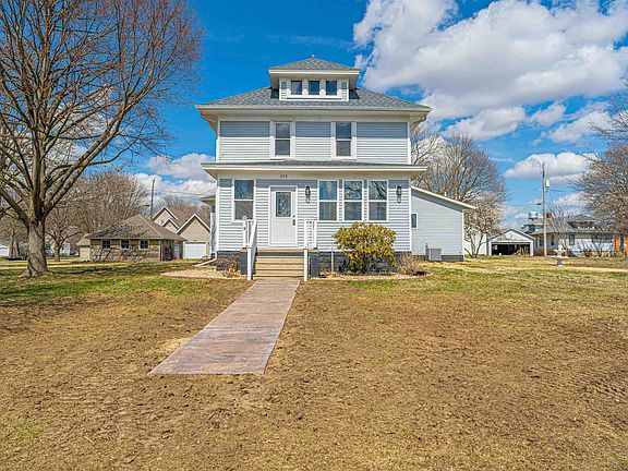 Sitting pretty on a generous 80X150 lot in the heart of Emden is this stunning totally transformed 4-bedroom, 2 full bath two story home with over 2,100 square feet of finished living space! From the gleaming hardwood flooring to the classic natural woodwork, this home offers both the charm of yesteryear as well as the desired updates for today! Step inside the main floor and be welcomed by an inviting enclosed front sunporch, gracious foyer with an open staircase, front facing living room, generous dining room with a window seat area, newly installed kitchen with sleek white cabinetry, and a 33-foot-long rear family room addition host to a center woodburning fireplace, side facing exterior access point, as well as adjacent laundry and full bath areas. Upstairs, you will find four comfortably sized bedrooms -- all with refinished wood flooring -- and a full hall bath with a charming clawfoot bathtub. The huge basement offers mechanicals, great storage/work space, as well as an exterior access point -- SO much space! Other desirable features include a 23X12 attached garage with rear alley access, side deck, improved storage shed, whole house attic fan, and SO many recent updates including vinyl siding, vinyl replacement windows, soffit and gutters, architectural roof, fixtures, exterior doors, overhead garage door, central air conditioning unit, electrical panel, fresh paint, professionally refinished hardwood flooring -- WOW! City water/private septic system. Premier home!