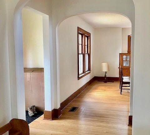 Charming 1926 colonial on a peaceful, tree lined street in desirable Glencairn neighborhood. Awesome location - walk to post office, library, downtown East Lansing and MSU. Home is filled with natural light and features hardwoods, arched doorways, a cozy fireplace, screened side porch and built ins. Bright, efficient European-style kitchen includes unique custom appliances. Additional full-size refrigerator in basement. Many updates including a new roof, wall and attic insulation, refinished floors, asbestos abatement and low VOC paint. Escape to the beautifully landscaped, fenced yard surrounded by flowering trees. An additional spacious, sunny garden to the west is ready to be planted. A lovely home in a tranquil setting thoughtfully updated and ready for your family!
