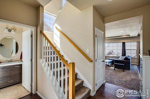 Amazing home in Erie Highlands with Mountain Views and Walk out basement. Tall ceilings and open floor plan provides an abundance amount of natural light and also includes fully landscaped backyard, stainless steel appliances, dark hardwood flooring in entry, dining and kitchen area. and granite countertops. Back deck has amazing views of the mountains and breathtaking sunsets and also allows you access to the back yard. Upstairs you have a master suite with a 5 piece master bath and two additional bedrooms with a huge bonus/loft room that is ideal for an office or kids play area, and don't miss the huge laundry room upstairs. The sun filled, unfinished walkout basement could be a fantastic work out space, or office with amazing storage space. Your new home is only blocks away from the community clubhouse, pool and fitness center provided.