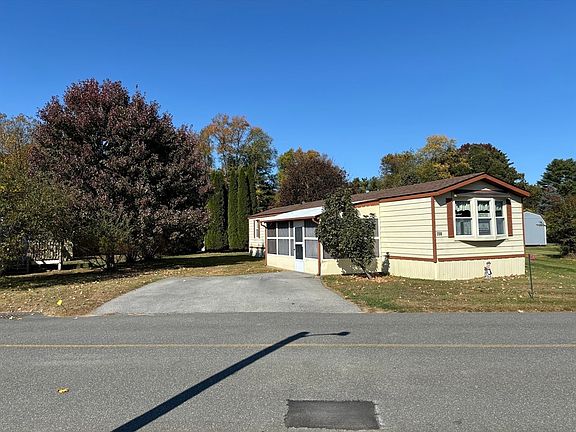 Welcome home to Sturbridge Retirement Cooperative Corp, a 55+ community! This 1987 model features an inviting sun porch, open-floor plan consisting of bright Kitchen with updated cabinets and large breakfast bar. Open to the Living room with vaulted ceilings! 2 Bedrooms, 1 Bath & washer/dryer hookups. There is a ramp and deck off back that need work, also a storage shed. $25,000 park share is not included in the sale price and must be paid at the time of purchase. The park holds the right of first refusal. Buyers are required to submit a tenancy application to the Property Manager, who will have 10 days to approve or deny the application. One dog under 30 lbs is permitted, and cats are also allowed. Maintenance fees cover taxes, water, sewer, trash, basic cable & snow removal of park. See attachments for park rules. Being sold as-is!