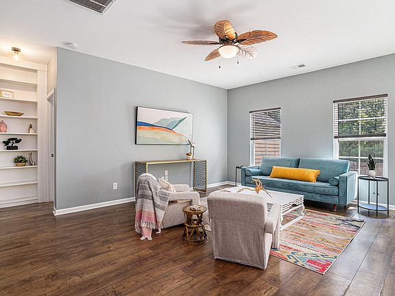 Discover the perfect floor plan in the charming Reminisce community! This home features 4 bedrooms and 3 full bathrooms, ensuring ample room for everyone. The main level includes three bedrooms, with the primary suite privately located in the back of the home. The attached bathroom is an owner's oasis, complete with a walk-in closet, soaking tub, separate shower, and dual vanities. The open and airy living area, enhanced by 9' ft ceilings, seamlessly connects to the gourmet kitchen. This space boasts stainless steel appliances, quartz countertops, and a stylish subway tile backsplash. Upstairs, you'll find a versatile secondary living area, a full bathroom, two closets and a generously sized bedroom. Enjoy the tranquility of a wooded lot and and take advantage of community amenities,including a refreshing pool.