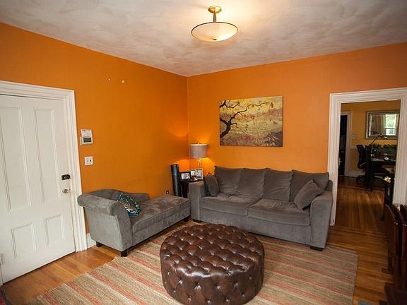 VIDEO TOUR and scheduled appointments available. This 2 bed, 1 bath apartment is located on the first floor unit in a Victorian style two family home. Situated on a corner lot in Cambridgeport, the unit features a large covered back deck overlooking the fenced in yard that has plenty of space and shade. The apartment is only a few blocks from Magazine beach and a 9 minute walk to Central Station, with plenty of on-street permit parking available. Inside, the unit has beautiful hardwood floors, tall ceilings, and lots of natural light. There is common laundry and storage in the basement. Tenant to pay metered utilities and broker fee of one month's rent.