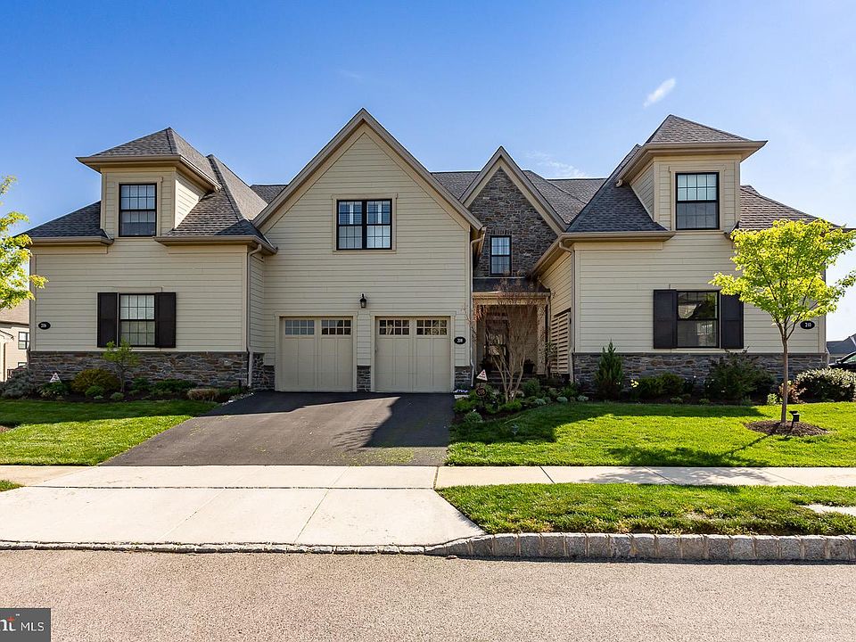 Maintenance free living is just the beginning to explain this exceptional 3 bedroom, 2.5 bath carriage house located on a cul de sac in the desirable premier community Reserve at Creekside. Just pack your bags and move right into this perfectly maintained, freshly painted home that has a ton of upgrades and feels like a brand new house. Walk up to the front porch and take note of the new landscape design of the front yard and then enter into the foyer area and observe the openness of the first floor covered in hardwood floors. The office separated from the foyer by french doors can also be used as the dining room and portrays wainscoting all around and leads thru a pocket door right into the gourmet newly renovated kitchen. The generous size eat in kitchen has new Quartz countertops on the large island highlighting a farmhouse sink , a double oven built in, walk in large pantry with custom shelving, 36" stove with a pot filler faucet, stainless steel appliances, new tiled backsplash, new faucet, a fabulous coffee bar was added plus an additional area where cabinets were added and shelving on the wall plus there is a door to lead out to the maintenance free deck. Over looking the kitchen is the large family room with a custom gas fireplace and a slider door that sheds lots of natural light and provides access also to the expanded rear deck. Rounding out the first floor is the renovated powder room and access to the 2 car attached garage. The two story stair case takes you upstairs where hardwood floors fill the spacious hallway and guide you thru the custom double doors into the primary bedroom suite boasting a decorative wainscoting on the wall plus a balcony over looking the back yard, a gigantic walk in custom fitted closet and a spa like luxurious renovated full bath with a frameless glass shower and pebbled stone floor, a double sink vanity with new quartz counter tops along with a private water room. Two additional bedrooms along with custom fitted closets and an upgraded hall bath as well as a laundry room complete the second floor. The full walk out lower level basement with high ceiling is ready for finishing and provides access to the patio via french doors. The landscaping has been redone in the front and back of the house, all the lighting has been updated, a gas line has been installed on the deck, 2 zone HVAC plus so much more to talk about. Outstanding community location with a short walk to the 4500 sq ft Clubhouse, Outdoor Pool, Fitness Center, Kitchen and gathering room. Nestled between Philadelphia Cricket Club Golf course, minutes from the natural beauty of Wissahickon Valley and Ft Washington Parks. Close to shops and restaurants in Chestnut Hill, all major arteries and regional rail lines to Center City. A turn-key showpiece home that allows for maintenance free luxury living at its finest!