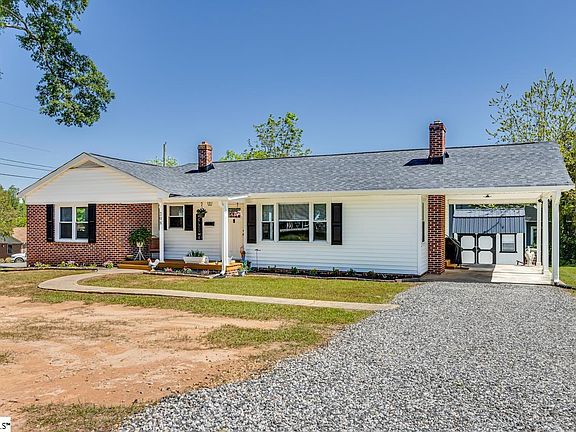 Located in the heart of Clinton, this beautifully renovated home is the perfect starting point for all your adventures. Updated in 2021, this property is beautiful, energy efficient, and low maintenance! Enter through the front door into the living room, which features a cozy gas log fireplace (new logs installed by CNNGA in 2022) and a large flatscreen TV, which is perfect for movie nights or the big game (and it will convey at closing!). In the kitchen, the stunning granite counters, island with plenty of storage, and stainless steel appliances are a chef's delight. The built-in microwave and garbage disposal makes meal prep and cleanup a breeze. With beautiful new light fixtures and recessed lighting, you can set the mood for any occasion. The spacious rooms and great floor plan make this property comfortable and inviting. Down the hall you will find the three bedrooms with a hall bath at the end. The master suite features multiple closets and an en suite which has a shower with a custom glass door. The Samsung washer and dryer on pedestals are included with the sale of the home. And let's not forget the new concrete patio, perfect for outdoor entertaining. The attached carport is a great feature, as you can enter through the side door with all your groceries into the kitchen. If you're looking for additional parking or boat/RV storage you'll love having a second gravel driveway behind the house with a detached carport. The large shed (new in 2022) provides all the extra storage you'll need for tools, bikes, and outdoor equipment. The Ring doorbell and solar-powered security cameras will help you keep an eye on your property through a convenient app. This property is centrally located and close to everything - downtown Clinton, Presbyterian College, Interstates 26 and 385, and Clinton Middle School. Don't miss out on the opportunity to make this your forever home. Come see it today!