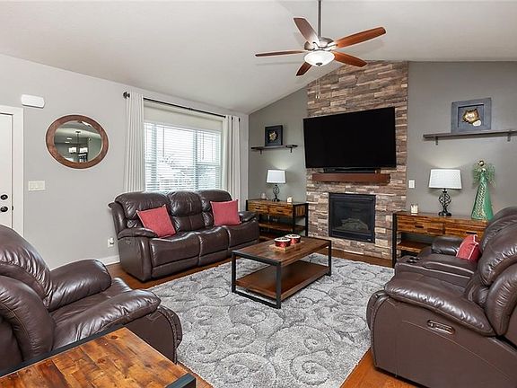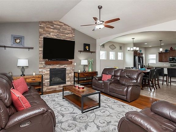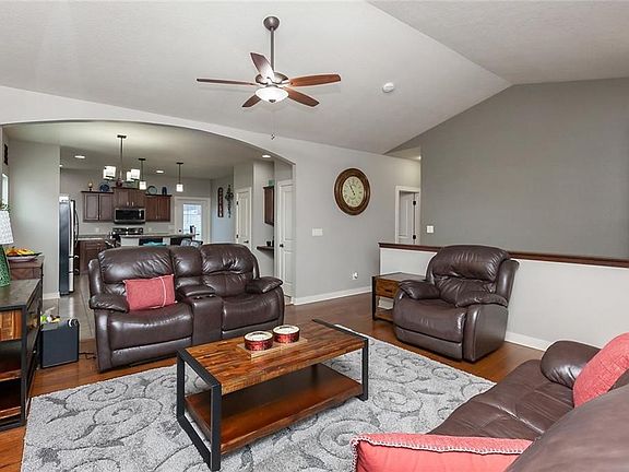 This fantastic 4 bedroom (plus a 5th non conforming), 3 bath ranch home in Norwalk is sure to impress! The front entry opens into the living room area with wood floors, floor to ceiling stone fireplace and vaulted ceiling. The living room, kitchen and dining area is great for entertaining. The kitchen has a wonderful island and coffee bar area. The primary bedroom has a tray ceiling, ensuite bathroom and walk-in closet. Two additional bedrooms, full bath, and laundry/drop zone complete the main level. Retreat downstairs to a large living room with corner bar, bedroom w/walk-in closet, additional non conforming bedroom, bathroom and great storage room space. Main and lower level feature 9' ceiling heights! Outside enjoy the fully fenced yard and great entertaining space with the large deck AND huge patio area. Newer Tuff Shed in the backyard for additional storage. Schedule your tour today!