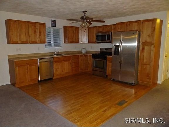 This home boasts a large fenced backyard with mature trees, great for shade and privacy. The large deck offers ample space for grilling and entertaining or just relaxing. The oversized garage is a definite plus, too. Inside you will find an open floor plan which encompasses a living room, dining room and kitchen area. Interior of home was rebuilt in 2012. The kitchen offers plenty of cabinets and soft-close cabinet drawers, stainless appliances which include upgraded dishwasher, gas range and built-in microwave. Three spacious bedrooms. Full bath has skylight. The lower level is spacious as well, and offers a lovely wood-burning fireplace, family room and bonus room. It also has a 3/4 bath on this level. The walkout basement is also a great feature of this home. Partial basement. Alarm system. With all this home has to offer in one package, you must see it for yourself!