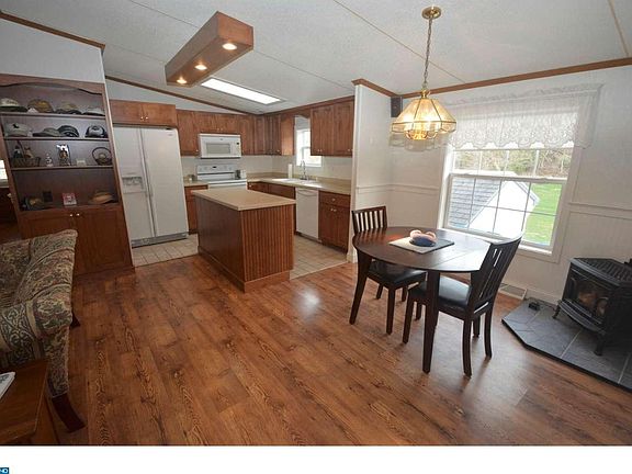 Beautiful single ranch style home on over .60 acre lot. Spacious open floor plan with vaulted ceilings and laminate wood floors. Modern kitchen with loads of counter and cabinet space, an island, a skylight plus a large pantry. Bright and cheery dining area with a cozy propane stove ideally placed open to the kitchen and the living room. Three good sized bedrooms. The master bedroom has a grand personal bath with spacious shower as well as a walk in closet. A second full bath compliments the other two bedrooms. Fantastic office with doors for peace and quiet has built in book shelves/cabinets. Convenient laundry room with door to backyard. 2 Car detached block garage. Enjoy the view of the bordering Manatawny creek at the back of the property.