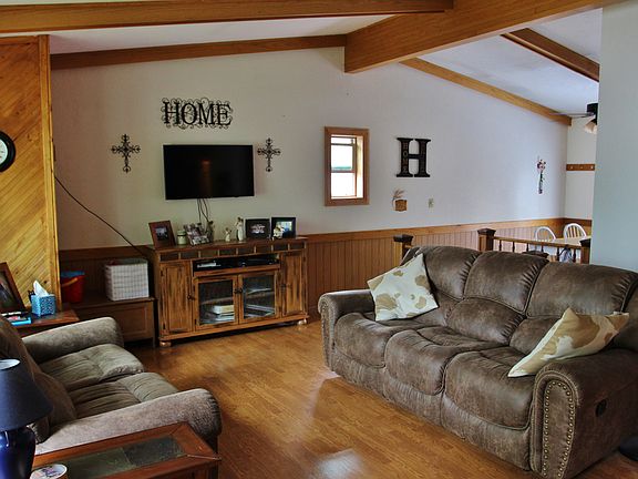 Call to schedule a showing on this perfect family home. Come see this 5 bedroom, 2 bath house with 3 bedrooms on the main floor and 2 additional non egress bedrooms in the basement. You will be sure to find this house has plenty of space for you and your family. The house has newer windows, updated flooring throughout the main level. The living room, dining room and kitchen have vaulted ceilings which make it the perfect space for hosting or entertaining. The main floor bathroom has a large jetted tub en-suite to the primary bedroom. Downstairs you will find a built-in bar and a pellet stove to keep the house toasting on those chilly winter nights as well as an updated, tiled shower. This home is equipped with an on demand hot water heater. Outside you have plenty of off street parking on a long driveway to the large, oversized garage that is connected to an additional storage shed. At the back of the house there is a deck that connects the house and garage, its a perfect addition of outdoor living space.