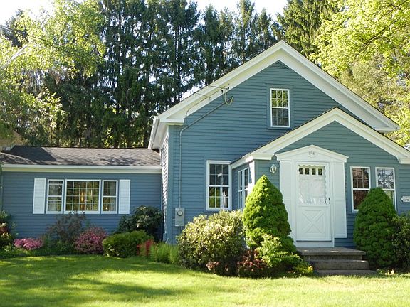 Originally among the first, one room school houses in town, Circa 1790, this home has been in the same family's ownership for almost 70 years. Conveniently located near schools and shopping centers, the property has a full acre of land, consisting of 2 separately deeded parcels. There is a .24 acre lot w/the home and garage and a land locked adjoining rear parcel w/.76 acres offering room to expand or even potential to add a large garage/outbuilding. The cottage style one level home boasts a formal living room, formal dining, a large family room addition with wood burning stone fireplace, 3 bedrooms, large country kitchen with great work space, full bath, first floor laundry connected in one bedroom closet with stackable washer/dryer units, & part red stone foundation. The home is well maintained, offers replacement windows that are approximately 12 years old and has an updated circuit breaker panel replaced in Dec '13. Make the clever choice to own this piece of town history!