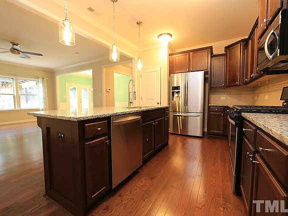 Beautiful open floor plan with crown molding and hardwood floors throughout main level. Kitchen has granite C/tops, tile back splash , island, and SS appliances that includes a refrigerator. Direct vent fireplace in familyrm. Separate dining room with open design. Office area has desk/cabinets and granite. Mudrm off garage. Large Master bedrm with two closets one is WIC. Mast. bath has double vanity with granite C/T and ceramic tile flr. Hall bath with ceramic flr and granite C/T.