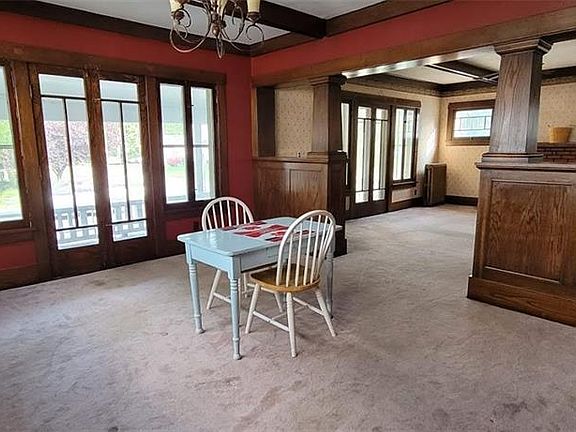 Adoring Craftmsman Cape in Medina's West Village near Erie Canal. Walk-in Pantry w/ built-ins. Stately, one-of-a-kind natural woodwork columns separate formal dining and living room. Front windows offer no shortage of natural light, leading to covered front porch. First Floor Bedroom and Half Bath. Large closets, full basement and shed for storage on this maintenance free lot. Delayed showings until 10/5/2020 at 12PM.