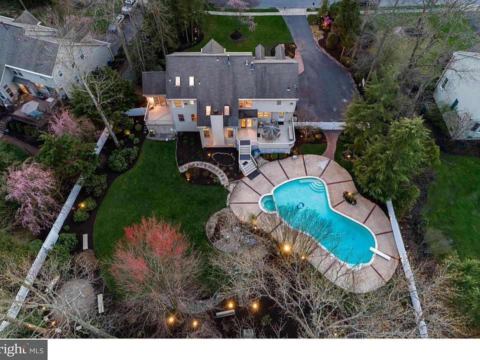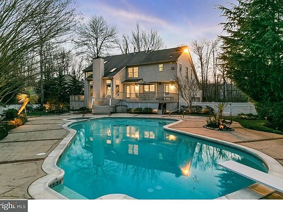 Opportunity Awaits in Desirable Kings Crossing! This 5 bedroom 4 1/2 bath home with side turned Garage is nestled into a tree lined, cul-de-sac community on just over an acre lot. Featuring a large fenced yard with Heated, in-ground, Gunnite, Salt Water Swimming Pool... this beautiful Sylvan pool also includes hot tub, professionally landscaped all around, vinyl fencing, and backs to Green Acres. Natural sunlight streams through the Anderson Windows as you enter from the Grand Foyer and step into the two-story Family Room. The Formal Living Room is open to the Bonus Sunroom, offering an adjoining deck...from the backyard you'll find access to fantastic storage space for pool equipment, furniture and more below this deck. Large Formal Dining Room, butlers pantry, and spacious eat-in kitchen with vented gas cook top in center island. The kitchen area will lead you to another large Deck overlooking the Pool area. Just off of the Family Room area is the Office/Library featuring Custom Designed, Built-In shelving and Desk space. Upstairs the Master Suite includes a large walk-in closet, vaulted ceiling, and en-suite with stall shower and deep garden tub. Three additional generous sized bedrooms, hall bath, and a jack-n-jill bath for bedrooms three and four. The 5th bedroom and 4th full bath are located in the sunlit English Basement which has larger windows and finished space for a game room, gym, media room, playroom and more Plus wet bar, as well as unfinished space for tons of storage...extra Fridge and Shelving included! Additional amenities include a newer water heater and a New HVAC (1 yr), Central Vacuum System, Whole House built-in Speakers with individual volume control, and Recessed Lighting throughout the home. Kings Crossing is just minutes from downtown Moorestown and easy access to major roads, highways, and shopping. Make your appointment today!