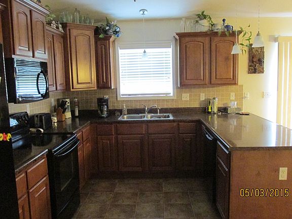Check out this beautiful 3 bedroom 2 full bath home in Rock Creek Subdivision. This home is situated on a large lot backing to trees. Deer can be seen at times right out the kitchen window in this serene park like setting. Kitchen boasts custom cabinets with lots of storage space including a pantry. Stainless steel kitchen appliances are all less than 1 year old and will remain with the home. This home also includes main floor laundry and walk out basement. Basement also offers 9 foot pour and rough in for bathroom in basement. Master bedroom offers coffered ceilings, walk-in closet and on suite master bathroom. Neighborhood amenities include lake access. This is a must see!