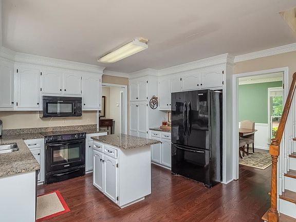 - RoomKitchenFeatures: Granite Counters, Kitchen Island, Eat-in Kitchen, Cabinets-Stained, Floors-Tile