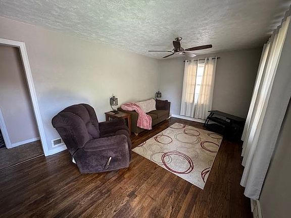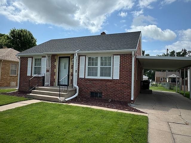 Charming 2 BR, 1 bath brick home with carport over driveway and large backyard with underground sprinklers. Cute breakfast nook off of kitchen, finished hardwood floors in LR and bedrooms. Partially finished basement with lots of space. Newer furnace and AC, extra chest freezer in basement. New roof and gutters and some updated touches. All kitchen appliances stay. Microwave may need some work. The washer and dryer in basement stay.
