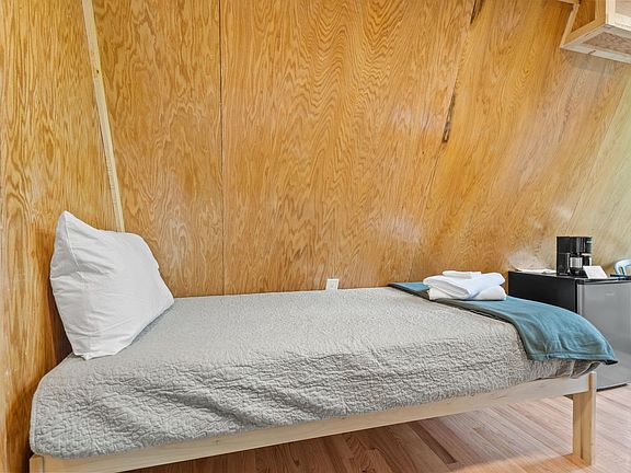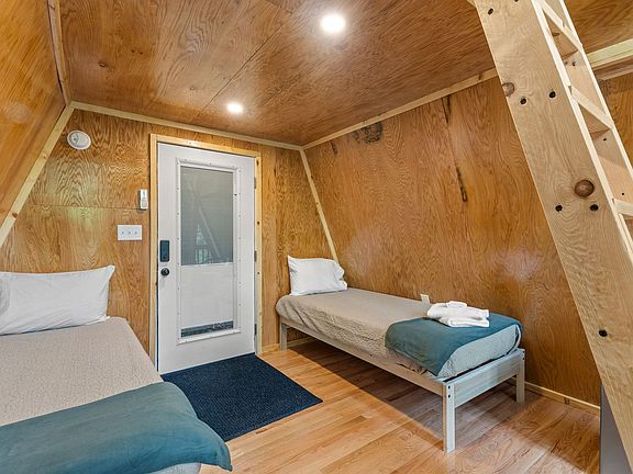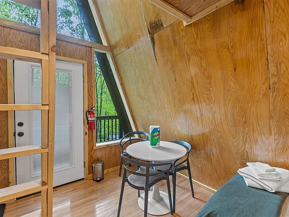A-Frames Under Canopy offers a unique glamping experience in the Red River Gorge, featuring three A-frame cabins and a large central pavilion. Each cabin accommodates four guests, providing a cozy retreat for up to 12 people. Nestled in a shady hollow, this property spans 10 acres of private forest, offering stunning views and a serene atmosphere. The cabins are equipped with heating, air conditioning, coffee makers, decks with forest views, and large windows to connect you with nature. The central pavilion includes an outdoor kitchen, covered seating, a wood-burning fireplace, and two half baths and showers, making it an ideal spot for communal meals and relaxation. Dogs are welcome with an additional $100 fee, with a maximum of two dogs allowed. Dogs must be crated if left alone at the property. Ample parking is available, but a car is required and 4WD is recommended due to the gravel road access. Located in the heart of the Red River Gorge, this property is just minutes from Natural Bridge State Park and other local attractions like Miguel's Pizza and Red River Gorge Ziplining. The area offers a variety of outdoor activities, including hiking, rock climbing, and kayaking, all within a short drive. Check-in begins at 4 pm and check-out is at 11 am. Arriving early or departing late may incur additional charges. Smoking is only permitted outside, and no events or parties are allowed. Camera surveillance is in place facing the parking lot. Please note that trailers are prohibited.