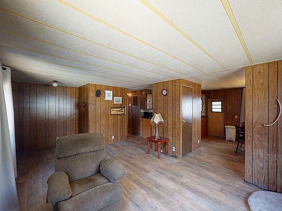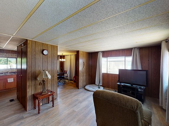 Enjoy the beautiful views from your front and back covered porch! Features large fenced yard, perfect for gardening and three metal carports with a detached garage. A cozy 2 BR 1 BA double wide manufactured home with newly upgraded luxury vinyl plank flooring throughout, a brand new furnace and heat pump, and freshly painted bathroom. Included in the sale: refrigerator, range, washer, and dryer! Don't miss your opportunity on this conveniently located home!