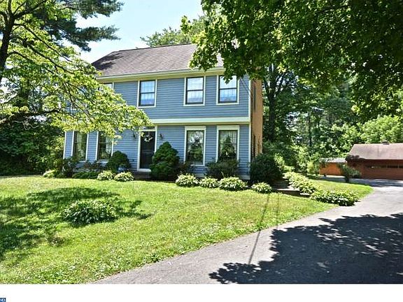 Down a long drive away from the road, this Nantucket Saltbox Colonial sits peacefully on a parklike yard just a hop skip and jump to Pennington Boro. Convenient Commuter friendly location is sure to please. Winding walkway to a welcoming center hall entry which is flanked by handsome formal rooms. Family room with fireplace and french doors to patio is open to newer kitchen featuring cherry cabinets, granite counters and center island breakfast bar. First floor laundry and half bath are tucked between the side door to kitchen and the outside entrance. Upstairs, four corner bedrooms, master with private bath, walk in closet and family bath. Detached oversized two car garage with loft storage, outbuildings, full basement, central air.