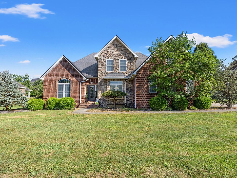 Elegant brick and Stone Beauty in sought-after Royal Oak Subdivision! This stunning 4-bedroom, 2.5 bath home seamlessly blends timeless charm with modern comfort. The spacious primary suite is conveniently located on the main level, featuring a luxurious ensuite bath and soaring cathedral ceilings that create a serene retreat. Entertain in style with a grand living room, also boasting cathedral ceilings, and host dinners in the formal dining room or casual meals in the large eat-in kitchen. A dedicated flex space makes the perfect home office or bonus room to suit your lifestyle. New HVAC system installed June 2025 for upstairs. Step outside to enjoy your covered back porch, ideal for entertaining year-round. Located in the highly desirable Royal Oak subdivision, this elegant home offers both sophistication and comfort in prime location. Don,t miss your opportunity - schedule your showing today!