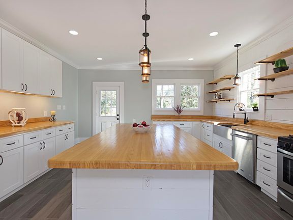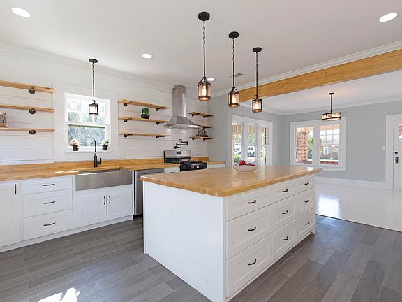 This beautifully renovated 1930's home brings you modern comfort with a touch of historic charm. The inviting open floor plan features a soothing color palette & plenty of natural light throughout showcasing what can only be described as the kitchen of your dreams!This gorgeous kitchen features beautiful custom-made butcher block cntr tops, HUGE work island w/ drawers, shaker style cabinets, floating shelves, all new eco friendly appls., & new gas range w/ hood vent.You'll appreciate the attention to detail given to the finishing touches such as the lovely Shiplap accent wall & sophisticated pendant lighting.The master suite exudes texture and warmth w/ a beautiful pine accent wall and ceiling, recessed lighting, walk-in closet and dbl vanity sinks in master bath. Other renovations include