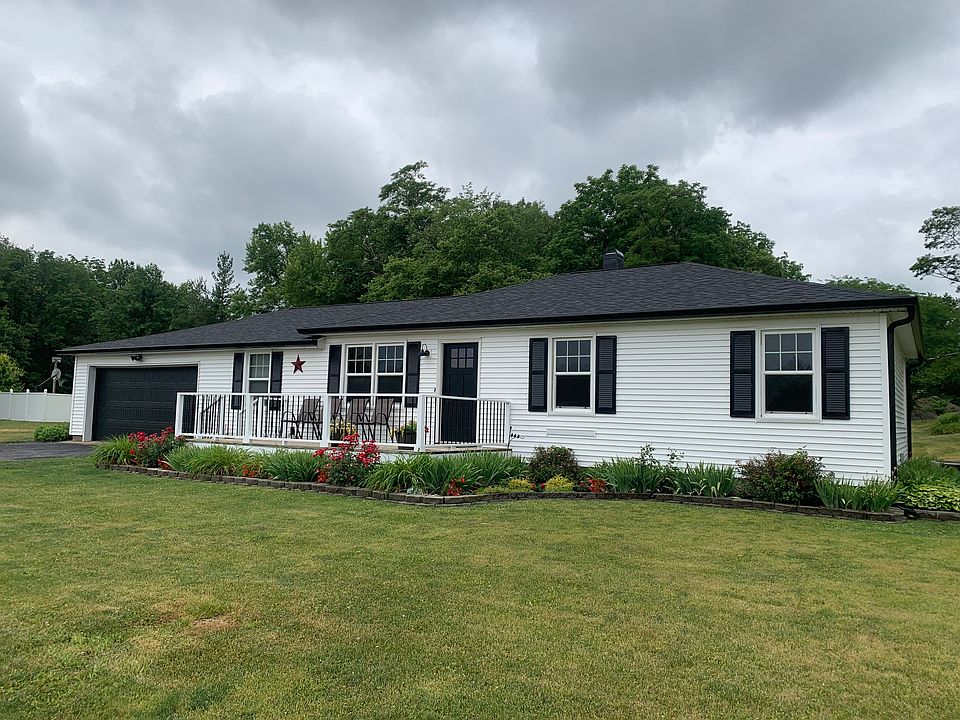 Great location! Hard to find, updated ranch in country location, only a few minutes from town. The home features 3 bedrooms, 1 bathroom and a huge attached garage. Updates include, new roof, gutters, downspouts, flooring, exterior/interior doors, paint throughout, and much more. The garage is a handyman's dream, with room for a workshop. Brand new siding on the storage shed, perfect for many uses. All this at an affordable price. This location is hard to find at this price