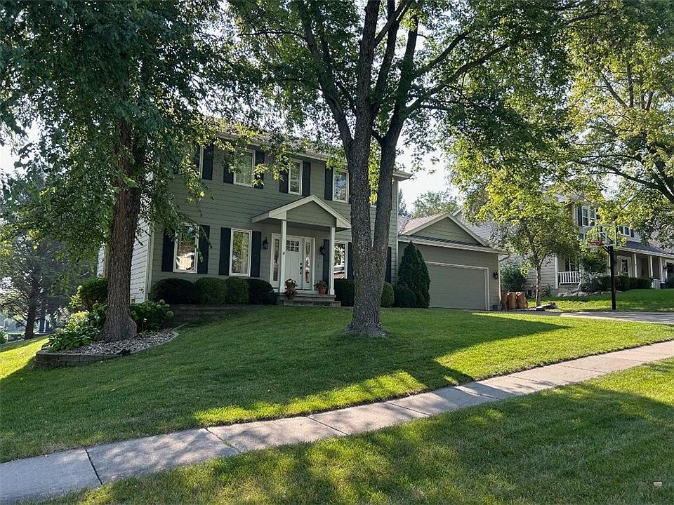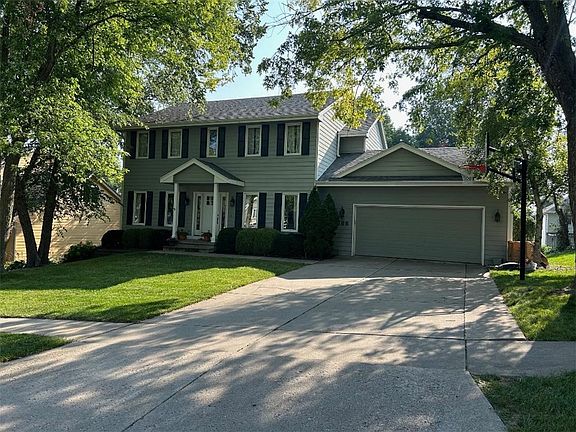 Beautiful colonial home in Jordan Grove neighborhood with lots of updating. Hardiplank siding, Brazilian cherry wood floors, 9 ft ceilings on 1st floor, beamed family room ceiling, primary suite with soaking tub and tile shower. Quartz counters in kitchen and bathrooms. Two outdoor spaces with large deck and high end stone patio. Finished basement with daylight windows. Home is equipped with central vac, soft water, April Aire humidifier and gutter guards. Close proximity between Jordan Creek Mall and downtown restaurants. See attachment for updating.