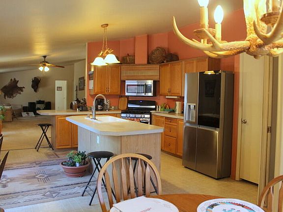 Single Level Manufactured home. 4 Bedrooms, 2 Baths, 2176 Sqft on .26+/- Lot. Large great room with eat-in kitchen, dual gas stove, dishwasher, kitchen island, breakfast bar, walk-in pantry, laundry room with washer and dryer, large master bedroom with a garden tub, double sinks and shower. Split floor plan with 3 additional bedrooms and a bath. Backyard is fenced along with a fenced dog run. Deck for your outside enjoyment.