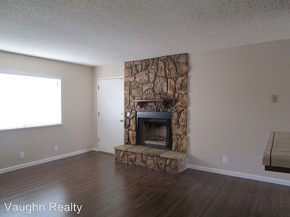- -Freshly painted 2 bedroom, 1 bathroom unit. -Eat in kitchen with french doors to patio area and new tile flooring. -Living room has new laminate wood flooring and stone fireplace. -New carpet in bedrooms. -Washer/Dryer hookups in garage. -Quiet area. No shared walls, garages separate units. -New garage door w/opener -Evaporative cooling/forced air heating. -Refrigerator provided but not warranted. -Cats subject to owner approval limit 2. -No Dogs. No Dogs Allowed (RLNE3800154)