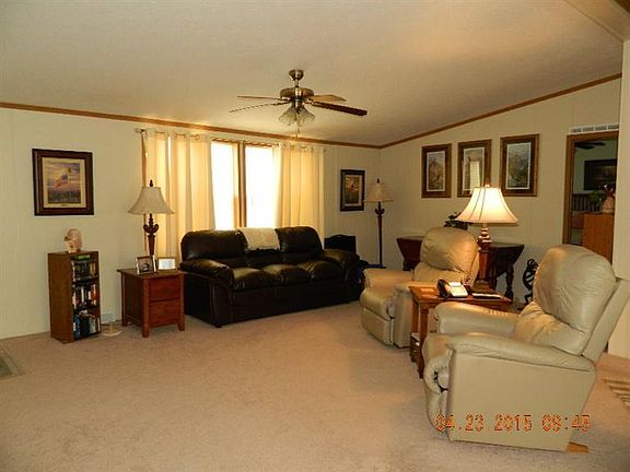 Very nice 3 bedroom, 2 bath manufactured home on a nice sized lot. Open floor plan, new flooring in much of the house, permanent siding, detached 2 car garage. Deck on the back with fenced in yard space. All appliances will stay, f/h, c/a.