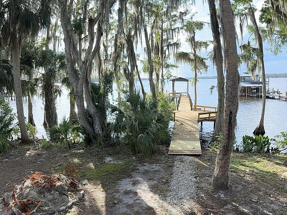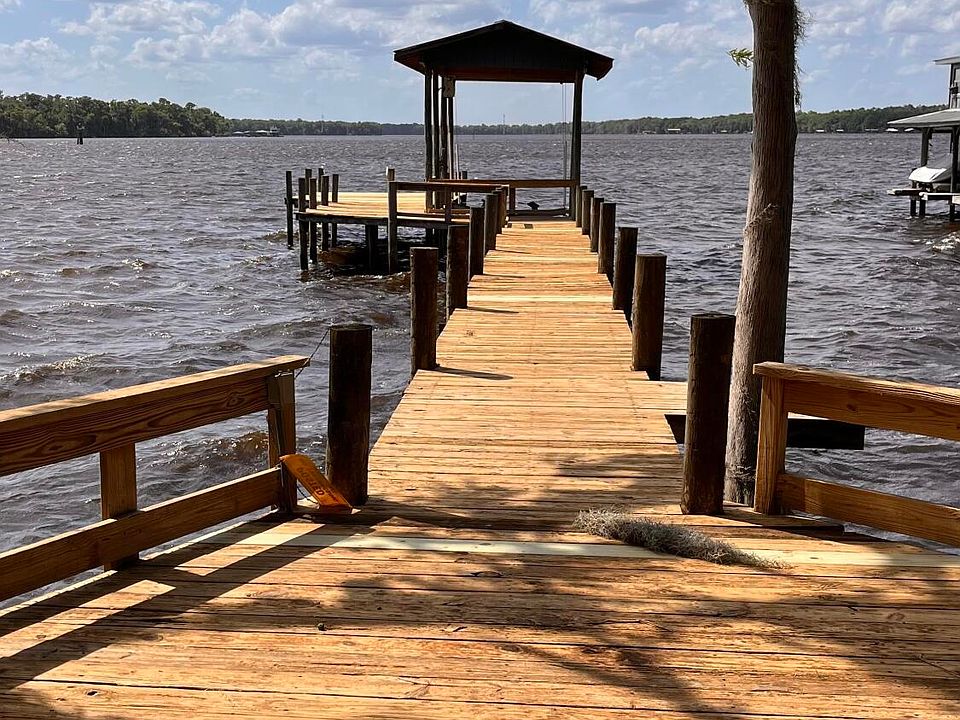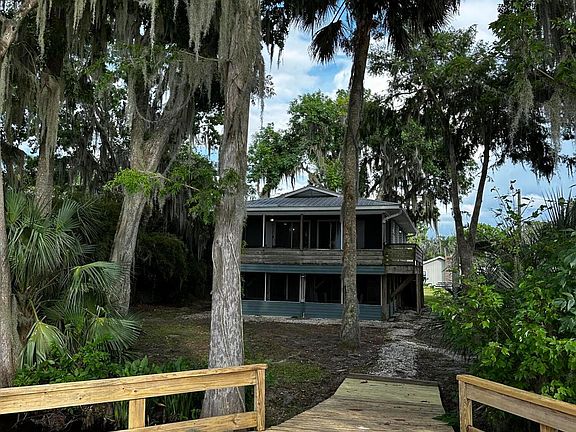 St Johns Riverfront home. 2/1 stilt house. Living area upstairs and large bonus room downstairs. Dock with covered boat lift and RV carport. Screened porches on both floors. Beautiful trees. Homes only neighborhood with private community boat ramp. Rent house when not using or live full time. No restrictions on rentals.