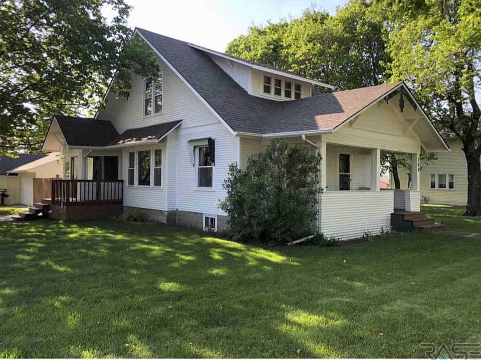 Two words...CHARM and CHARACTER! This beautiful Craftsman two story retains its original woodwork and hard wood floors to provide the new owners a one of a kind home in the quiet yet convenient town of Humboldt, SD. Highlights include built-in china hutch, bookcases and pillars; clawfoot tub with a brand new shower enclosure; clothes chute on both floors; corner double lot with new concrete sidewalk. Not to mention there are so many bonuses not expected with a vintage home...recent electrical and plumbing updates with vintage style light switches in the living areas; storage shed; privacy fence and backyard patio; excellent storage space; ethernet cables; dog kennel; and newer SS appliances with a convection microwave. The 3-stall garage includes a natural gas furnace and window air conditioner, workshop area, and is wired for 220v. The exterior was painted in 2017.