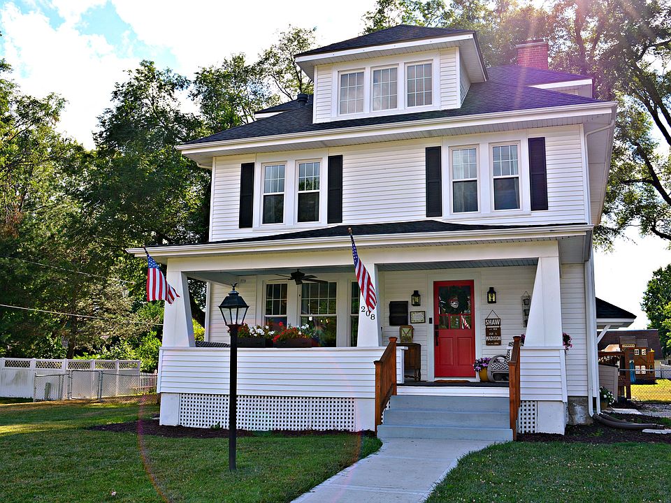 Buyers Agents welcome, but please no solicitation. It's your chance to own one of the most talked about homes and a piece of history right here in Raymore. Built in 1919 with exceptional quality and care. This 100 year old farmhouse is just what you are looking for. Completely remodeled using an architect and structural engineer this home is solid. This home is situated on almost a 3/4 acre lot right in the heart of Raymore. The dreamy covered front porch welcomes guest. The backyard boasts an 650+ sq ft deck for your entertaining pleasure. Entertain guests while listening to music on your covered front porch or dining on your expansive deck. The kitchen boasts a beautiful 10' island with architectural reclaimed porch post as island legs and a custom wood Range hood that will impress all of your guest. Reclaimed wood and Hand hewn beams flank the dining room and kitchen entrance. Gather your family around a large dining room table with an original built in bench with storage for all of those family games or table linens. The original builtin cabinet has plenty of room to decorate and store your collections. A large walk in pantry that has hookups for another refrigerator make the pantry unique for this area. The 1/2 bath has the original chimney running through it that was originally the kitchen. Cozy up to watch a movie in front of the beautiful fireplace. The original staircase, leading upstairs, has been carefully brought back to its former original glory. Complete with stair lighting for those dark nights. You have whole house hardwood flooring with tile on the 2nd floor bathroom and master bathroom. On the 2nd floor you have 4 bedrooms all with crown molding. The bathroom on the 2nd floor is drenched in white subway tile and has a 3 faucet school house sink replica. The common area on the 2nd floor comes with an area for a stackable washer and dryer. No more lugging the kids laundry to a laundry room. It's right at your fingertips. The 1st and 2nd floors also have wired in sound for you music pleasures. As you make your way to the 3rd floor Master retreat you will be in awe of the beautiful oak staircase. The original chimney has been left exposed and adds a touch of authenticity to a once unfinished attic. The bedroom has a reading nook to curl up with a book and relax in your own space. The gas fireplace has reclaimed shelves from the attics original stairs and a wood hearth that originally was structurally holding up the attic. The Master Bathroom has all of the wants of a modern bathroom but with a timeless design. The claw foot tub and exposed double shower beckon you. The warmth of the heated floors under your feet in the whole master bathroom invoke a sense of comfort and a spa like feeling. Your master retreat also has it's own oversized walk in closet. Complete with your own washer and dryer area. The closet has built in lighted cabinetry for all of your clothing. This 1919 farmhouse is not only beautiful but efficient as well. Most lighting in the home is LED. You will have whole house zoned heating and cooling complete with humidifiers and whole house air filtration systems. A tankless hot water heater with a small 5 gallon backup ensures you will never run out of hot water. With to many upgrades to list this home is a must see.