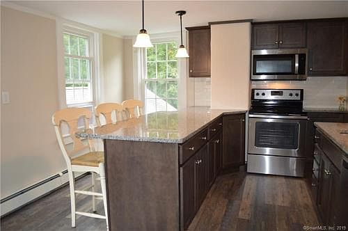 The Historic John Breed Tavern is now a charming 3 family home within walking to downtown Colchester and all that the town has to offer from restaurants, shopping, parks etc.. This lovely unit, which is located on the 2nd floor, has been completely renovated. The kitchen has custom cabinetry with granite countertops, an island, new appliances including a high efficiency washer and dryer. The bathroom is newly remodeled as well. The living room has an area that could be used for office space. All light fixtures, electrical, plumbing and flooring are also new. A deck overlooks the rear yard that is shared with another unit. Owner occupied on the first floor.