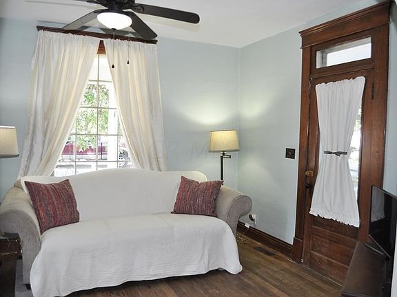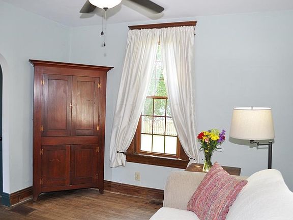 Adorable 2 story is filled with character & charm & has over 1/4 acre! You'll love the large windows allowing lots of sunlight into the home, wood floors, neutral decor, & MORE. The main floor features a living room with arched opening to a spacious formal dining room. The eat-in kitchen provides appliances, nice size pantry, & outside entrance. Upstairs is complete with 2 generous bedrooms. Convenient 1st floor full bath. Outside you'll find the covered porch with swing, detached garage, premium wood fence (2016 - exclusively designed by a local builder), back patio, & mature trees that accent the backyard. Located near the local pool, park, & library! Relax on your front porch with your favorite book OR stroll down to the park. Move right in & Welcome Home!