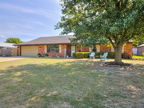 Split floor plan four bedroom, three bath home in Dewey! Comfortable large living area with vaulted ceiling and wood burning fireplace. Freshly painted kitchen cabinets for a bright fresh look. Spacious master bath with double sinks and whirlpool tub. Kitchen stove is plumbed for electric or gas. Newer bathroom tile and interior paint. Newer A/C and hot water tank. Extra parking. Full privacy fence.
