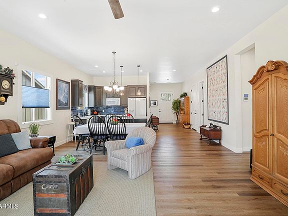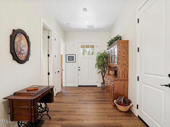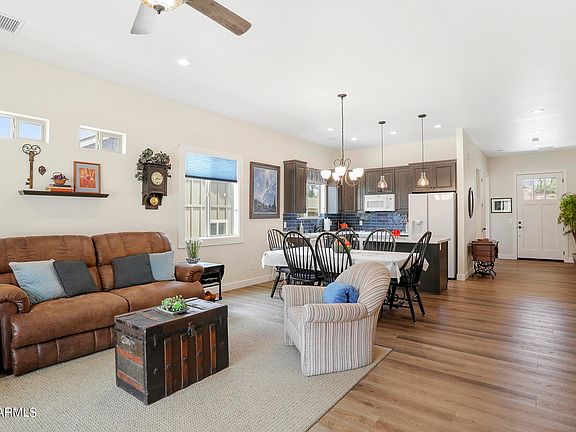This amazingly beautiful 1-year-old farmhouse style home is located on a double lot and has a 3-car garage with one pull through bay. No inside stairs & handicap accessible. 10' ceilings throughout the home. Walk-in pantry. Canadian-made wood burning stove with thermostat & blower heats entire house. Beautiful cobalt blue backsplash in bathrooms, master shower & kitchen. Appliances include GE gas self-cleaning, air fryer range with stovetop griddle; 27.4 cu ft Samsung side by side refrigerator; Bosch dishwasher; GE 4.8 cu ft front load washer; GE 7.8 cu ft dryer. Reticulating hot water throughout. Encore Water Conditioner & Softener engineered for Payson water AND an EcoWater Reverse Osmosis Drinking Water System with R/O faucet & line to refrigerator. 4" MERV 13 filter & Reme Halo-LED Air Purifier built into HVAC system reduce airborne allergens, bacteria, viruses, mold, smoke and VOCs. Aprilaire humidifier built into HVAC system automatically adjusts humidity. Beautiful Bali cellular shades throughout, blackouts in bedrooms. Queen wall bed. Fiber-optic supply with CAT-5 interior cables & Arris DOCSIS 3.0 modem/router. WiFi enabled Ring alarm system, garage doors, HVAC thermostat, washer & dryer and front lights. Complete roof gutters discharging underground to street. Garage includes 5 storage cabinets, workbench & 44' of shelves. And so much more!!!! Some furnishings available outside of escrow.