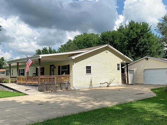 This 1976 Mobile Home was remodeled and a 20x70 frame addition added in 2013 with a new roof over entire structure, vinyl siding, electric and plumbing, furnace and air. This all electric home features a large kitchen with an abundance of cabinets, 3x5 pantry, island, and storage, living room, dining room, 2 bedrooms, office, utility room w/ shelving, and a mud room w/ emergency gas wall furnace, 2 large storage closets and a utility sink. Covered front porch and back porch are both handicap accessible, 2 c. detached garage(24x36)with concrete, electric, insulation, and additonal overhead door with covered workspace. Concrete drive, additional lot, carport for RV storage with concrete base. A large back deck(8x39) overlooks beautifully landscpaded yard(3 city lots, approx .45 acre) featuring bradford pears, roses, and many prennials plus fenced yard and large garden space make this back yard your own little oasis.