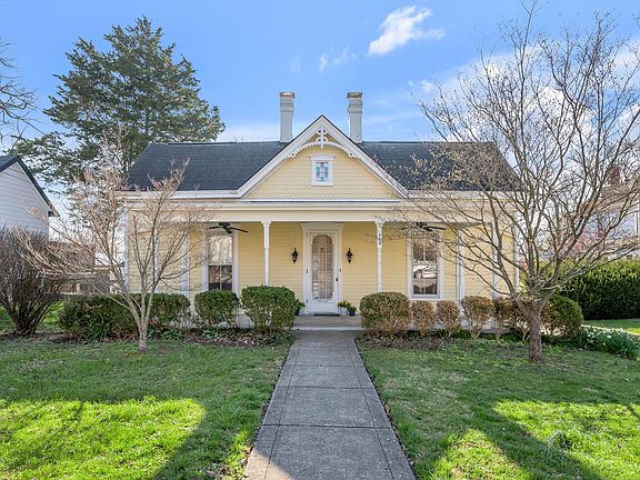 Historic Midway! Known as the Nave-Wehrle House, this charming cottage just steps away from downtown shopping and restaurants offers 10 foot ceilings, hardwood floors, exposed beams and 2 bedrooms with 2 full baths. Additional features include large living room, dining room with built-ins, eat-in kitchen, first floor laundry, unfinished basement with access from both interior and the exterior and one car garage. Built for (and perhaps by) Charles Nave, a local builder and cabinet maker, the original part of the house was constructed in 1877 with a front addition in 1890. Property being sold As-Is, inspections are welcome. Convenient location with easy access to Lexington and I-75!