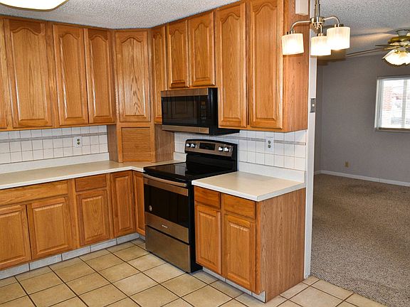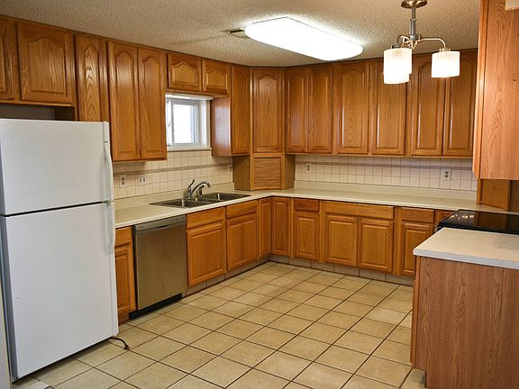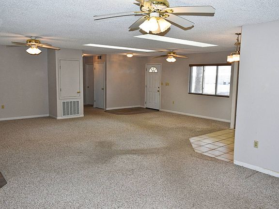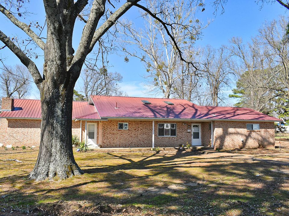 Situated on a corner lot in town, this property is mere walking distance to enjoy an evening high school football game or a bite at nearby restaurants. The well-maintained home has had updating in recent years including a metal roof, window replacement, added insulation and more. Upon entering the home, one will appreciate the open concept kitchen, dining and living area, which was expanded by converting the third bedroom to additional living space. There is a guest room, full bath for guests, and a primary bedroom with a private bathroom that has a spacious shower. On the other side of the home is a large second living area with a fireplace that could even be used as another bedroom. Behind it is a large utility room with full-size washer dryer connections and a storage room. Outdoors, a covered patio overlooks the back yard, which has a clothesline, sizable, spray-foam insulated storage building and an in-ground storm shelter. This is a great place to call home and at an affordable price!