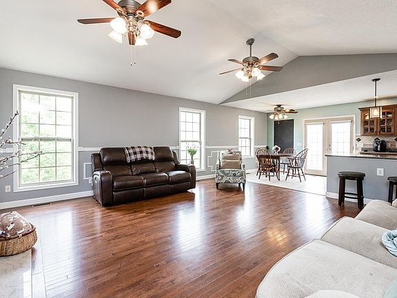 Impeccable ranch home located is conveniently located on the north end of town. This well-maintained residence features 5 bedrooms and 3 full baths. With spacious of living area, there is ample room for comfortable living. Upon entering the home, you will be greeted by a foyer and open floor plan concept. The hardwood floors, vaulted ceiling, and wood burning fireplace provide a warm and inviting atmosphere. The 3 main level bedrooms offer plenty of space for relaxation and privacy, while the 2 main level bathrooms provide modern amenities. The eat-in kitchen boasts stainless appliances & breakfast bar while opening to the living room, making it a perfect place for cooking and entertaining. The backyard patio with fire pit and fenced yard offer additional convenience and opportunities for outdoor enjoyment. Located in a desirable neighborhood, 208 Sarah Ct offers a peaceful & family-friendly environment while being close to restaurants, schools, and shopping! Here's to your dream home!