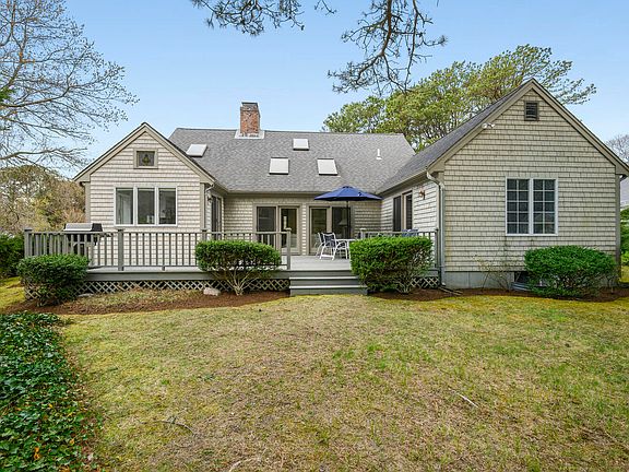 This custom contemporary Cape is set on a beautiful lot with mature landscaping and flowering perennials in a coveted neighborhood minutes to Craigville Beach, Dowses Beach and Joshuas Pond. This 4 bed, 3.5 bath home features a spacious 1st floor primary bedroom suite with French doors to a large deck, a light filled living room with cathedral ceiling, skylights and a gas fireplace and a family room with custom built-ins ideal for relaxing and quiet gatherings. The gourmet kitchen includes stainless appliances, Corian counters and a dining area surrounded by windows and glass French doors that open onto the deck complete with a piped-in gas grill and a serene backyard with potential for a pool. The 2nd floor has 2 bedrooms and a full bath. A bonus room features a large art studio with skylights. Amenities include tile and hardwood floors, central air, irrigation, central vac, first floor laundry, attached 2 car garage a large full basement. The house has a newer roof and gutters, many new windows and doors, new HVAC system, new whole house generator, alarm system and many recent improvements, all conveniently located within a walk to Centerville Library Four Seas Ice Cream!