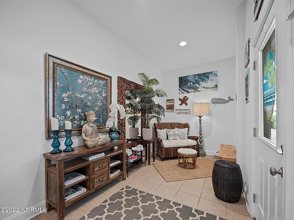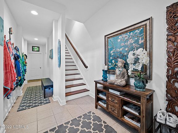 Welcome to 208 Sea Star Circle in the desired Sea Star community in Surf City, offering beach access to Topsail Island's award-winning beaches, community pool, walking/biking distance to Surf City's local shops, restaurants, and local watering holes! Reverse floorplan offers second level living space with smooth vaulted ceilings flooded with natural light, gourmet kitchen hosting four burner stainless steel flattop Whirlpool stove, ample storage in white cabinets, dual basin stainless steel sink with Delta faucet placed in granite countertops trimmed with 4-inch tiled backsplash. Entertain guests at pendant lit eat-in breakfast bar, dining area, or take the party to your ocean facing deck and enjoy the sunset! 3-1/4 inch wood plank flooring lead to second level Master Suite with private balcony overlooking the pool, large en-suite with tiled walk-in shower, and jacuzzi soaker tub. Lower level hosts two guest bedrooms sharing a deck offering views of the community pool, sound and intracoastal waterway, full guest bath, and second Master Suite boasting bullnose corners, Harbor Breeze fan hanging from 9-foot ceilings, 5-1/2 inch trimmed wood flooring, elevated dual vanity with Delta fixtures, 12-inch tiled walk-in shower, and 6-foot sliding door leading to private, 180 square foot, ocean facing covered deck with added privacy curtains. Additional features of this home include main level half bath, tiled wet weather entry from carport, enclosed ground level storage, outdoor shower, community pool, easy beach access, and so much more!