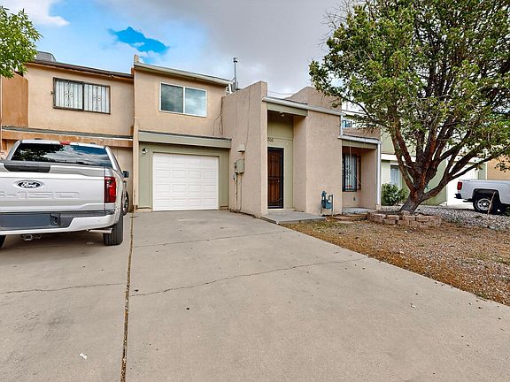 WELCOME TO A TOWNHOME THAT FEELS JUST RIGHT. Step inside this two-story Albuquerque casa and picture yourself curling up by the cozy fireplace in the living room. Enjoy easy maintenance with your modern tile and wood-look floors. The kitchen flows easily into the living space, making every gathering feel connected. Upstairs, two bedrooms and a full bath with a garden tub offer comfort and relaxation, while the downstairs half bath adds convenience. A large fenced backyard with shade is perfect for summer afternoons, pets, or a quiet garden, and the one-car garage adds practical ease. Move-in ready, this home is waiting for you--come see it today before it's gone! New roofing shingles installed August 2025!!!