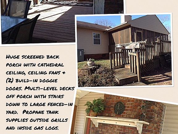 2224SF 4BR/2BA home, appliances included, completely updated, fully floored attic with built-in shelving, large screened porch with cathedral ceiling, rocking chair front porch, sprinkler system, all electric, fenced yard, with utility building and detached garage both sided/roofed to match home. Large laundry room with custom cabinetry. Discreetly positioned propane tank provides fuel for gas grill and gas fireplace logs. Lovely, quiet neighborhood. Family friendly Neighborhood Description Beautiful, well established neighborhood. Family friendly, short/easy drive to shopping, restaurants, and medical facilities. Very quiet.