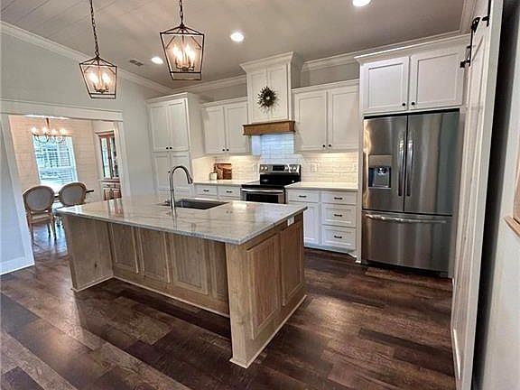This 4 year old Farm style home is tucked away off a quiet country road in one of Kolin's newer developments with only 6 houses and a dead end street that offers country charm. The open floor plan is centered around a massive kitchen island, adjoining dining area, high ceilings, custom mantel with fireplace and tons of natural lighting. Split floor plan with large guest bath and nice size bedrooms. The primary bedroom is to rear of home for added privacy and the bathroom boost a custom ceramic shower and large garden tub with double vanity sinks. The mudroom is conveniently located off the carport and rear has a large covered porch area with additional concrete added for excellent entertaining space. Seller has upgraded with newer flooring and a lot of custom upgrades during construction.