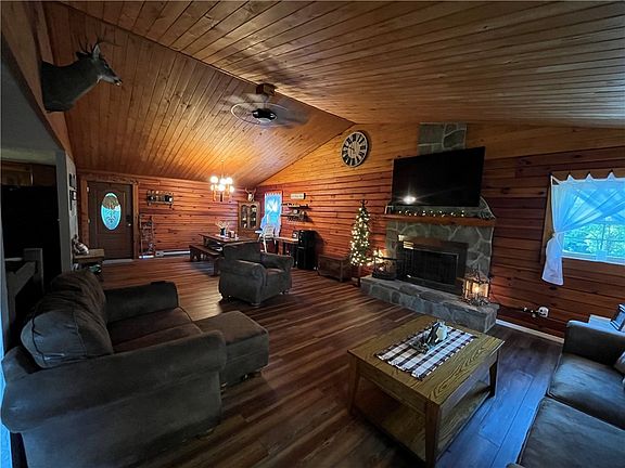 Surround yourself with nature, in this private location featuring a ranch style log home, situated on 18 acres, with beautiful views. Only 15 minutes from Morgantown, WV. Property has both cleared and wooded land, as well as freshly planted deer plots on it. Home features 2 bedrooms, and 2 full bathrooms, Large open concept living and dining area, kitchen with plenty of cabinetry, and fully finished basement, to include a family room and den. New luxury vinyl flooring throughout the main level of the home. Custom built wooden doors, and barn doors throughout, and updated bathrooms. Wood burning fireplace, and wood burning stove as well for those chilly nights. Storage shed, and carport included to house your tools and toys. Relax on the large covered front porch, or enjoy your evenings on the screened in back porch. If you are looking for country living and to be one with nature, this is a perfect home for you.