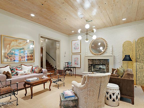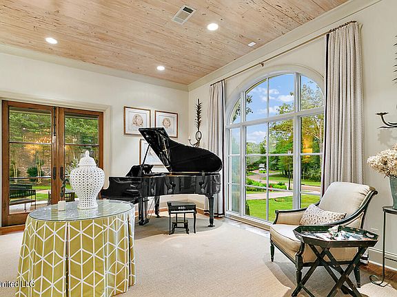 Fabulous, move-in ready, custom home with 5 bedrooms/4.5 baths in the desirable Silas Meadows neighborhood of Dinsmor. This beautiful home features antique beamed ceilings and gorgeous hardwood floors. As you enter, the elegant living room is to the right with a fireplace, expansive window and French doors that lead to a charming covered porch. The light-filled dining room is on the left of the spacious entry hall with a custom wine room nearby. A convenient butler's pantry is perfect for entertaining with a wine cooler, sink, second dishwasher, and storage. The gourmet kitchen has a Viking range with vent hood, a built-in refrigerator, microwave, and a farmhouse sink. The gorgeous cabinets were made onsite by a Mississippi artisan. A large island with ample seating opens to the handsome great room with a fireplace and a breakfast area. The large primary suite has a separate steam shower and tub, a huge walk-in closet, an exercise/office area, and an additional sitting room with access to the covered back patio. Upstairs there are three big bedrooms and two baths and a central entertainment area. On the other side of the home, there is a second large private bedroom suite with abundant storage. The picturesque backyard backs up to the Natchez Trace and has an irrigation system, a covered, slate patio and outdoor grill. Call your realtor to see this exceptional home today!